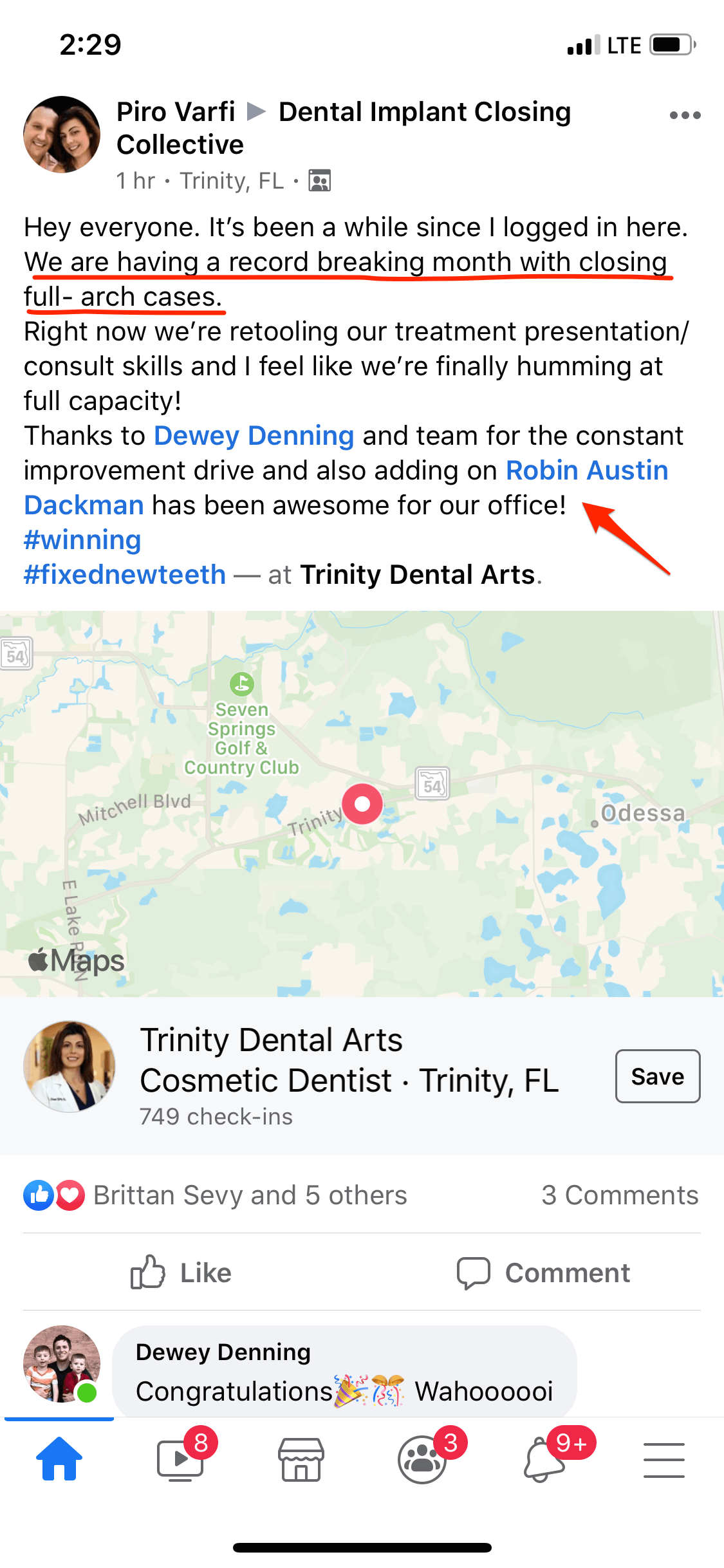 We've all heard it before... If you surround yourself with successful people you are more likely to become successful yourself! The Closing Collective is where the nation’s top dental implant marketing and sales people come to mastermind, improve their sales skills and skyrocket their dental implant production.